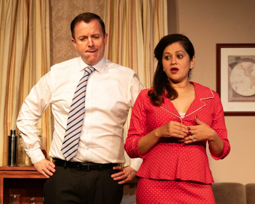 The play is a masterclass in deception. Enter cunning Eve Harrington (Anna Kosiarek), a seemingly mousy and naïve newcomer. Kosiarek’s notable ability to shift demeanor—changing expressions, posture, and tone in an instant—makes Eve’s duplicity both believable and engaging. She weasels her way into the life of glamorous and overly expressive actress Margo Crane (Sindu Singh). Singh portrays with delightful theatrical flair, perfectly capturing the Broadway divas of the era.